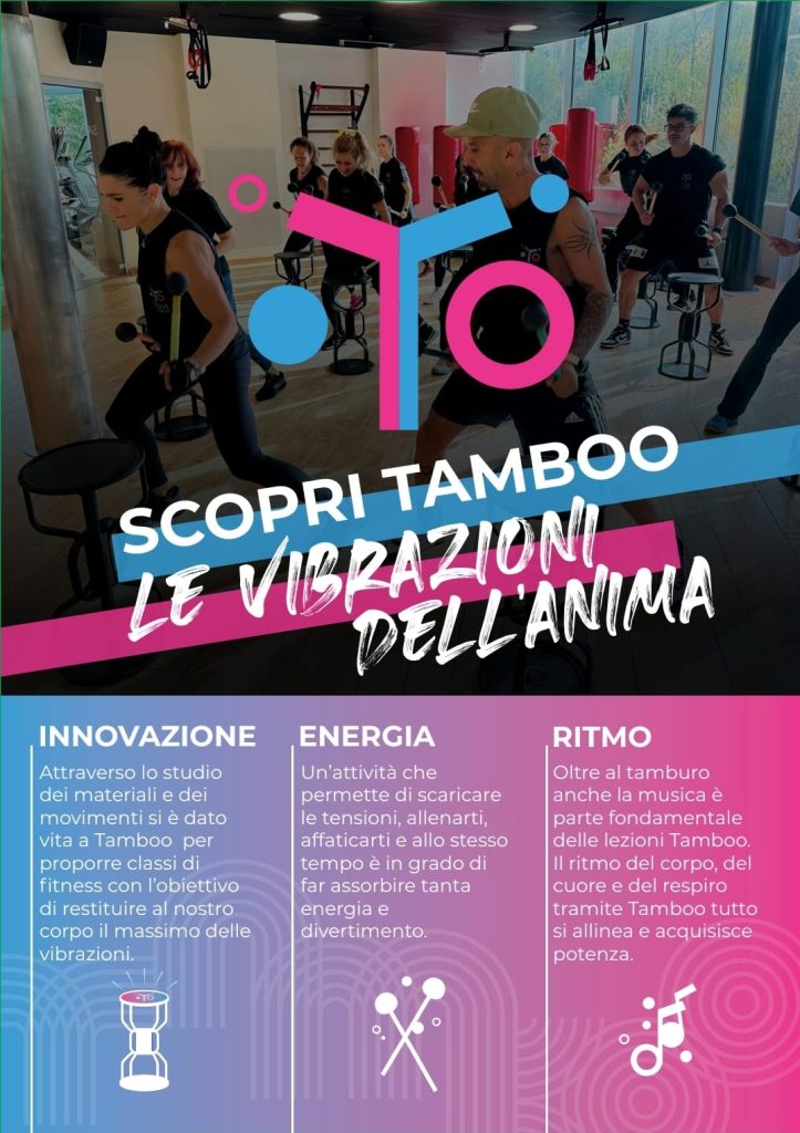 🔹 Di cosa si tratta: TAMBOO Fitness è una nuova disciplina che fonde allenamento funzionale, cardio e semplici coreografie in un’unica lezione, utilizzando un attrezzo multifunzionale e percussivo